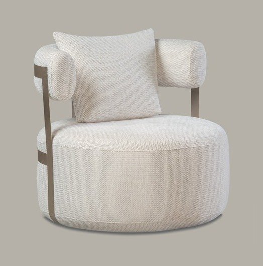 O assento fixo com espumas D-28 Soft proporciona conforto firme e aconchegante, enquanto o encosto com almofada solta em fibra siliconizada garante maciez e ergonomia. A base giratória em aço carbono agrega funcionalidade sem comprometer a estética refinada da peça.